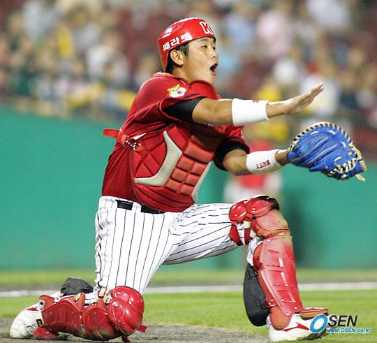 10일 두산 베어스와 기아 타이거즈의 잠실 경기 두산의 4회말 2사 1루서 최경환의 플라이볼을 기아 포수 송산이 어렵사리 잡아내고 있다./잠실=주지영 기자 jj0jj0@osen.co.kr [Copyright ⓒ OSEN(www.osen.co.kr) 무단전재 및 재배포 금지]
