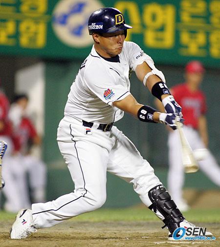 10일 두산 베어스와 기아 타이거즈의 잠실 경기 3-5로 지고 있던 두산의 8회말 2사 만루서 김창희가 2타점 동점 적시타를 날리고 있다./잠실=주지영 기자 jj0jj0@osen.co.kr [Copyright ⓒ OSEN(www.osen.co.kr) 무단전재 및 재배포 금지]