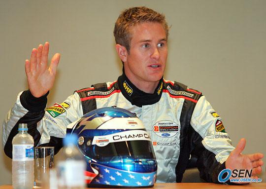 2005 안산 챔프카 국제 그랑프리대회 D-30 기자회견이 13일 오전 서울 삼성동 코엑스 아트홀에서 열렸다. 이번 대회에 참가할 예정인 라이언 헌터가 선수를 대표해 참석, 챔프카에 대해 설명하고 있다./주지영 기자 jj0jj0@soen.co.kr [Copyright ⓒ OSEN(www.osen.co.kr) 무단전재 및 재배포 금지]