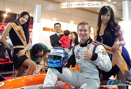 레이싱걸들과 포즈를 취한 챔프카 스타 레이 헌터