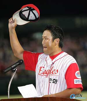 "기대하시진 않는게 좋을 거에요. 근데 홈런 치고 싶어요. 쎄게 휘둘러야죠". 한국 프로야구 개인 통산 최다 기록을 보유하고 있는 '홈런왕'의 은퇴경기에 앞서 15일 대전구장에선 비슷한 질문들이 쏟아졌다. "홈런을 칠 수 있을까요?" "홈런을 노리실 건가요?" 한화 장종훈(37)은 "2군에서 사흘 훈련을 한다고 했는데 훈련이라고 할 수 없었다. 기대하지 마시라"면서도 "홈런을 치고 싶다"고 답했다. 잠시 멈칫하던 장종훈은 "삼진을 먹고 유쾌하게 걸어나오는 상상도 해봤다. 삼진을 천개 넘게 당했는데 그 때마다 인상을 쓰거나 미안해 하면서 나왔지 단 한 번도 웃은 적이 없었다"고 덧붙였다. "그런데 막상 삼진을 먹어도 웃진 못할 것 같다"는 장종훈은 상대 투수가 이날이 데뷔 첫 선발이라는 말에 "설사 내가 삼진을 당한다 해도 그 선수의 장래에 도움이 되지 않겠냐"고 덕담을 아끼지 않았다. 프로 데뷔후 1950번째 경기이자 생애 마지막 출장에서 장종훈은 홈런을 때려내지 못했다. 이날 기아전에 7번 지명타자로 선발 출장한 장종훈은 2회 1사 1루에서 기아 선발 박정태의 빠른 공에 3구만에 헛스윙 삼진을 당했다. 스스로 짐작한 대로 장종훈은 활짝 웃지못했다. 덕아웃으로 돌아서며 보일듯 말듯 어색한 웃음을 흘린 게 전부였다. 장종훈은 1-2로 뒤진 4회 무사 2,3루에서 맞은 두번째 타석에선 바뀐 투수 정원에게 5구만에 3루앞 땅볼로 물러났다. '마지막 스윙'에서 한국 프로야구 최다 기록인 340개의 홈런에 한개를 더 보태지 못한 장종훈은 역시 한국 프로야구 기록인 삼진을 1354개로 늘리며 선수생활을 마감했다. 삼진은 홈런왕의 어쩔 수 없는 훈장이기에 장종훈도 'FOREVER 35'가 아로새겨진 수건 1만장을 나눠 흔들며 그의 이름을 연호한 관중들도 개의치 않는 표정이었다. 장종훈은 6회 대타 이도형으로 교체됐다. 1950경기 출장 6292타수 1771안타, 통산 타율 2할8푼1리에 340홈런 1145타점 1043득점 122도루 997사사구 1354삼진. 19번째 시즌을 끝으로 선수 생활을 마감한 장종훈의 최종 성적표다. 대전=이종민 기자 mini@osen.co.kr [Copyright ⓒ OSEN(www.osen.co.kr) 무단전재 및 재배포 금지]