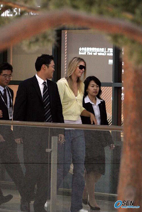 러시아의 '테니스 요정' 마리아 샤라포바가 미국의 비너스 윌리엄스와 오는 19일 서울 올림픽공원 제1체육관(체조경기장) 특설코트에서 '현대카드 슈퍼 매치'를 갖기 위해 16일 오후 인천 국제공항을 통해 내한했다. 인터뷰를 끝낸 샤라포바가 관계자들과 얘기를 나누며 공항을 빠져나가고 있다./인천공항=손용호 기자 spjj@osen.co.kr [Copyright ⓒ OSEN(www.osen.co.kr) 무단전재 및 재배포 금지]