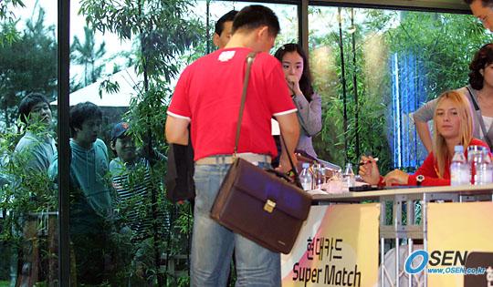 오는 19일 서울 올림픽공원 제1체육관 특설 코트에서 미국의 비너스 윌리엄스와 '현대카드 슈퍼 매치'를 벌일 여자 테니스 스타 러시아의 마리아 샤라포바가 17일 오후 서울 삼성동 현대백화점 무역센터점에서 윌리엄스와 합동 사인회를 가졌다. 많은 팬들과 취재진 때문에 샤라포바를 가까이 볼 수 없는 팬들이 행사장 바깥에서 유리창을 통해 샤라포바를 바라보고 있다./주지영 기자 jj0jj0@osen.co.kr [Copyright ⓒ OSEN(www.osen.co.kr) 무단전재 및 재배포 금지]
