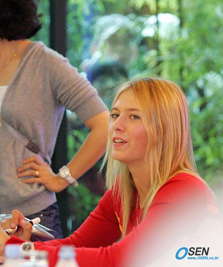 오는 19일 서울 올림픽공원 제1체육관 특설 코트에서 '현대카드 슈퍼 매치'를 벌일 여자 테니스 스타 러시아의 마리아 샤라포바와 미국의 비너스 윌리엄스가 17일 오후 서울 삼성동 현대백화점 무역센터점에서 팬 사인회를 가졌다. 행사장에 미처 입장하지 못한 팬들이 창 밖에서 샤라포바를 지켜보고 있다./주지영 기자 jj0jj0@osen.co.kr [Copyright ⓒ OSEN(www.osen.co.kr) 무단전재 및 재배포 금지]