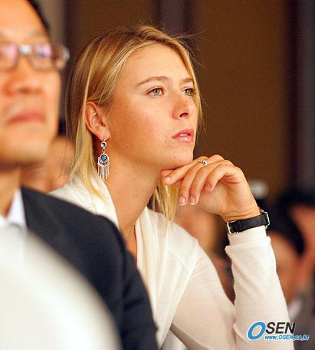 19일 서울 올림픽공원 제 1체육관 특설 코트에서 '현대카드 슈퍼 매치'를 벌일 여자 테니스 스타 러시아의 마리아 샤라포바와 미국의 비너스 윌리엄스가 17일 오후 서울 잠실 롯데호텔 크리스탈 볼룸에서 리셉션을 가졌다. 샤라포바가 자리에 앉아 초대 가수 렉시의 무대를 바라보고 있다. /주지영 기자 jj0jj0@osen.co.kr [Copyright ⓒ OSEN(www.osen.co.kr) 무단전재 및 재배포 금지]