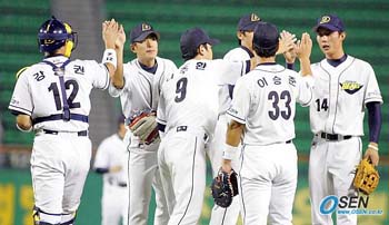 한국시리즈 직행 매직넘버를 줄이는 것 만큼이나 삼성이 바라는 건 에이스 배영수의 부활이다. 나머지 선발투수들이 썩 믿음직스럽지 못한 상황에서 배영수가 살아나지 않는다면 한국시리즈에 올라간들 희망이 없기 때문이다. 그런 의미에서 20일 대구구장에서 펼쳐진 LG와 시즌 최종 18차전은 삼성으로선 소득이 없었다. 에이스 배영수가 7위 LG 타선을 이기지 못하고 무너지며 3경기 연속 패전을 기록했고 자력으로 매직넘버를 줄이지도 못했다. 배영수는 채 구위를 끌어올리기 전인 1회 이대형과 클리어에게 안타를 맞고 먼저를 점수를 내줬지만 이내 위용을 되찾았다. 직구 구속이 151~152km까지 올라가면서 2~5회 4이닝을 안타 한 개와 볼넷 한 개만 주고 틀어막았다. 하지만 이에 맞선 LG 선발 레스 왈론드도 공이 좋았다. 2~4회 9타자를 연속 범퇴시키는 등 4회까지 무실점. 5회 박한이 진갑용에게 연속안타를 맞은 뒤 박정환의 희생플라이로 비로소 첫 점수를 내줬다. 1-1의 균형은 오래 가지 않았다. 씩씩하게 강속구를 꽂아대던 배영수는 6회초 첫 타자 루 클리어에게 빠른 공을 던지다 오른쪽 담장을 넘기는 솔로홈런(14호)을 맞은 뒤 무너져내렸다. 다음 타자 최동수에게 우중간 가르는 2루타를 맞은 뒤 1사후 김정민에게 우전 적시타를 허용했다. 한규식을 2루앞 땅볼로 잡아 고비를 넘기나 했지만 권용관에게 좌월 투런 홈런(9호)를 맞고 강판했다. 왈론드도 6회말 첫 타자 조동찬에게 솔로홈런(16호)를 맞았지만 무너지지 않았다. 다음 타자 박종호를 3루수 한규식의 송구 실책으로 내보냈지만 김한수의 3루앞 땅볼 때 오버런한 박종호를 2루에서 잡아 한숨을 돌렸다. 7회에도 선두타자 박한이에게 중전안타를 맞았지만 박정환을 더블 플레이로 유도해 불을 껐다. LG는 7회 김정민의 적시타로 6-2으로 한 점을 더 달아난 데 이어 8회 정의윤의 스리런 홈런으로 확실하게 못을 박았다. 왈론드는 7이닝 5피안타 무사사구 5탈삼진 2실점으로 시즌 4승째(9패). 5⅔이닝 7피안타 3볼넷 6탈삼진 5실점한 배영수는 9월 들어 세차례 등판에서 모두 패전 투수가 되며 11승 11패로 승패 수가 같아졌다. 배영수의 9월 방어율은 무려 5.94. 탈삼진은 146개로 두산 리오스와 공동 선두가 됐지만 2위인 방어율은 2.87로 높아져 방어율 1위(현재 롯데 손민한 2.46) 탈환이 힘들게 됐다. 양팀간 올시즌 대결은 삼성의 10승 8패 우위로 끝이 났다. 한편 캘러웨이-리오스 두 용병 투수가 맞대결을 펼친 현대-두산의 잠실경기에선 두산이 10-0 완승을 거두고 남은 경기 결과에 상관없이 3위를 확보했다. 리오스는 8이닝을 단 2피안타 1볼넷 5탈삼진 무실점으로 막는 완벽투로 시즌 15승째(12패)를 따냈다. 두산 이적후 12경기에서 9승(2패)로 이적후 방어율은 불과 1.42다. 1회 장원진의 몸에 맞는 공과 임재철의 중전안타로 만든 1사 1,3루에서 최경환의 내야땅볼로 선취점을 뽑은 두산은 3회 2사후 임재철의 우전안타를 시작으로 최경환 문희성 홍성흔 4타자가 연속 안타를 터뜨려 두점을 더 뽑았다. 이어 5회엔 홍성흔 손시헌의 안타와 3루수 정성훈의 실책, 김창희의 2타점 2루타로 4점을 뽑아 승부를 사실상 결정지었다. 현대는 4회 2사후 2루타를 치고나간 서튼이 정성훈의 중전 안타때 홈을 파고들다 아웃된게 뼈아팠다. 현대는 리오스의 구위에 이후 경기 끝날 때까지 안타를 때리지 못했다. 현대 선발 캘러웨이는 4⅔이닝 8피안타 2볼넷 1탈삼진 7실점(3자책)으로 8패째(16승)을 당했다. 롯데 손민한(18승)의 다승왕이 사실상 확정됐다. 이종민 기자 mini@osen.co.kr [Copyright ⓒ OSEN(www.osen.co.kr) 무단전재 및 재배포 금지]