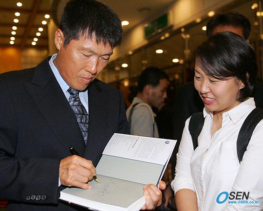 21일 낮 서울 상암 월드컵경기장에서 대한축구협회 창립 72주년 기념식 및 2002 월드컵 기념관 개관식이 열렸다. 차범근 수원 삼성 감독이 행사 참석자에게 사인해 주고 있다./상암=주지영 기자 jj0jj0@osen.co.kr [Copyright ⓒ OSEN(www.osen.co.kr) 무단전재 및 재배포 금지]