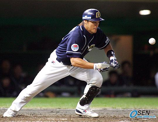 22일 SK 와이번스와 두산 베어스의 인천 경기 두산이 3-0으로 앞서던 4회초 무사 1루서 5번 타자 홍성흔이 보내기 번트를 대고 있다. 그 사이 문희성은 2루로 진루, 홍성흔은 책임을 완수했다./인천=주지영 기자 jj0jj0@osen.co.kr [Copyright ⓒ OSEN(www.osen.co.kr) 무단전재 및 재배포 금지]