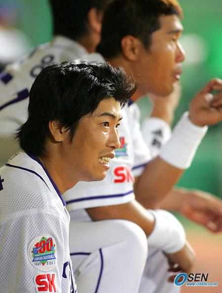22일 SK 와이번스와 두산 베어스의 인천 경기 9회말 2사 후 0-6으로 뒤져 있는 상황서 SK의 박재홍이 덕아웃에서 얼굴을 찡그리며 경기를 지켜보고 있다./인천=주지영 기자 jj0jj0@osen.co.kr [Copyright ⓒ OSEN(www.osen.co.kr) 무단전재 및 재배포 금지]