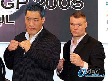 오는 11월 19일 일본 도쿄의 도쿄 돔에서 열리는 K-1 2005 월드 그랑프리 파이널 티켓을 따낸 '테크노 골리앗' 최홍만이 또 다른 네덜란드 거인 세미 쉴트와 맞대결할 것인지 관심이 모아지고 있다. 일본 스포츠 뉴스 웹사이트 에 따르면 K-1 대회를 관장하는 FEG의 다니카와 사다하루 대표는 지난 23일 그랑프리 개막전을 마친 뒤 가진 인터뷰에서 "쉴트의 대항마는 역시 최홍만"이라며 "두 거인의 대결은 결과를 예상조차 하기 힘들다"고 밝혔다. 특히 다니카와 대표는 "최홍만은 데뷔부터 정말로 노력하고 있어 어디까지 발전하는지 지켜보는 것이 큰 즐거움"이라며 "데뷔 당시 예상을 훨씬 뛰어넘는 활약을 보여주고 있다. 밥 샙과의 경기에서도 기술 이상으로 승리를 향한 집념을 엿볼 수 있었다"고 최홍만을 극찬했다. 218cm의 최홍만이 211cm의 쉴트와 맞붙는다면 그야말로 K-1 무대에서 두 거인이 격돌하는 셈. 하지만 최홍만이 밥 샙과의 경기에서 공격을 받을 때 고개를 숙이고 들어온다는 약점이 발견됐기 때문에 격투기에 능한 쉴트와의 경기는 승리를 점치기가 쉽지 않다. 한편 다니카와 대표는 "한국에서도 K-1이 방송돼 교통량이 줄어들었다는 얘기를 들었다. 인기선수는 최홍만"이라며 "하지만 이번 대회 최우수선수(MVP)는 가장 기세가 올라 있는 마이티 모를 쓰러뜨린 피터 아츠다. 아츠는 결국 14년 연속 파이널에 오르는 위업을 세웠다"고 밝혔다. 이밖에도 다니카와는 "글라우베 페이토자를 비롯해 모, 프랑소아 '더 화이트 버팔로' 보타에게 리저브 매치 기회를 줄 것을 생각하고 있다"고 덧붙였다. 박상현 기자 tankpark@osen.co.kr 지난 3월 서울 그랑프리 대회에 앞서 기자회견에서 포즈를 취한 최홍만과 세미 쉴트 [Copyright ⓒ OSEN(www.osen.co.kr) 무단전재 및 재배포 금지]