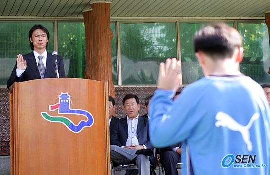 어린이 대표의 선서를 받는 홍명보 총감독