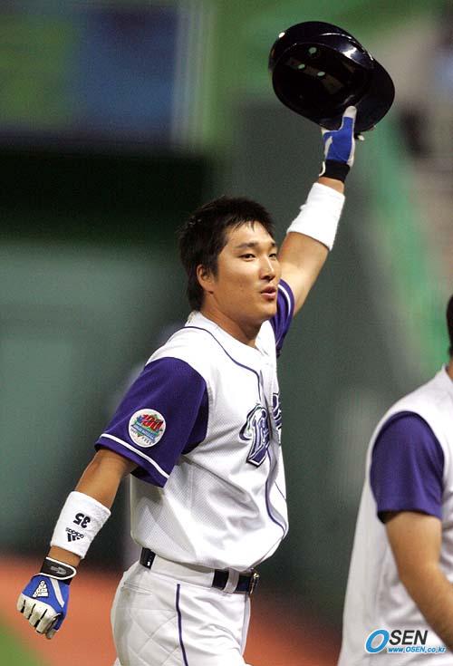 24일 문학구장에서 벌어진 SK 와이번스와 한화 이글스의 경기 SK의 6회말 선두타자 이진영이 한화 구원 투수 조성민으로부터 솔로 홈런을 빼앗은 뒤 팬들에게 인사하고 있다. 조성민은 한국 프로 무대에서 첫 피홈런을 기록했다./인천=손용호 기자 spjj@osen.co.kr [Copyright ⓒ OSEN(www.osen.co.kr) 무단전재 및 재배포 금지]