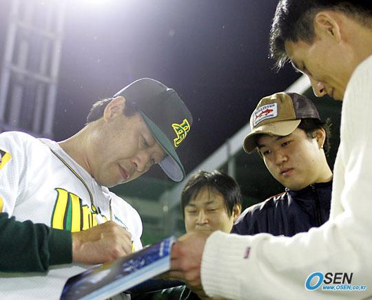 홈 최종전을 마치고 팬들에게 사인해 주는 김재박 감독