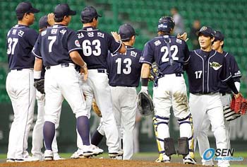 두산 곰돌이들의 막판 상승세가 무섭다. 여전히 SK에 반 게임 차 뒤진 3위지만 9월 들어 야구하는 걸 보면 SK는 물론 선두 삼성을 능가한다. 4강 중 맨 아래인 한화 김인식 감독은 지난 24일 SK전에 앞서 "(한화를 뺀 3개팀 중) 삼성이 가장 약한 것 아니냐"고 고개를 갸우뚱했다. 올 시즌 기회 있을 때마다 "두산이 가장 전력이 좋다"고 말해온 김 감독은 "두산은 리오스 랜들 김명제에 이혜천도 가세할 것이고 SK도 1~2번(선발)이 좋아 두 팀이 우열을 가리기 힘들다"고 말했다. 전임 감독의 칭찬에 더욱 힘이라도 난 듯 두산은 이날 경기에서도 또 한 번 무섭게 그라운드를 누볐다. 대구구장에서 펼쳐진 삼성과 시즌 최종 18차전에서 두산은 선발 김명제가 7이닝을 4피안타 2실점으로 막고 타자들이 홈런 3방 등 17안타를 퍼부어 12-2 대승을 거뒀다. 바르가스-임창용-김덕윤으로 이어진 투수들 중 최소한 한 명은 한국시리즈에서 거들어 주기를 바라고 있는 삼성으로선 승패가 의미없는 경기였어도 충격적인 대패였다. 이날 승리로 두산은 9월 들어 9승 4패의 가파른 상승세를 이어갔다. '후반기의 팀' SK(7승 4패)와 5할 승부에 급급한 선두 삼성(8승 7패)보다 막판 기세에서 훨씬 앞서있다. 나머지 3개 팀들이 두산을 두려워하는 이유는 단순히 많이 이겨서만은 아니다. 김인식 감독의 지적대로 포스트시즌 승리를 위해 무엇보다 중요한 1-2-3선발의 기세가 심상치 않다. 리오스-랜들-김명제로 이어지는 두산 1~3선발의 8월 이후 성적은 경이적이다. 에이스 리오스가 7승 1패 방어율 1.44를 기록 중이고 리오스의 가세로 덩달아 살아난 랜들은 8차례 선발에서 4승 무패, 방어율 2.36을 달리고 있다. 10경기에서 3승 무패를 기록 중인 김명제까지 3명의 투수가 27차례 등판에서 14승 1패, 방어율 2.06을 합작하고 있다. 타자들이 경기당 3점만 따내면 승산이 있으니 이기지 않을 도리가 없다. 김동주가 정상 가동되지 않고 있는 두산은 늘 방망이가 문제였지만 타선도 갈수록 활기를 띠고 있다. 홍성흔이 지난 여름의 부진을 완전히 털고 3할대 맹타를 휘두르고 있는 데다 김창희 홍원기도 하위타선에서 연일 한 방씩 날리고 있다. 24일 삼성전에서 선제 투런홈런을 날린 홍원기나 지난 22일 SK와 '빅 매치'에서 스리런 아치를 그린 김창희나 9월 들어선 상위타선 뺨치는 활약을 이어가고 있다. 김창희와 홍원기의 최근 맹타를 하위타자들의 반짝 상승세로 봐선 곤란하다. 김창희는 해태가 마지막으로 우승을 차지했던 지난 97년 주전 중견수로 한국시리즈 무대를 누빈 타이거즈 혈통의 '적자'다. 김창희는 지난해 기아와 준플레이오프 1차전에서 손을 다쳐 삼성과 플레이오프를 뛰지 못한 아쉬움을 1년 동안 가슴에 담아두고 있었다. 홍원기도 올 시즌 2할대 초반 빈타에 허덕여왔지만 두산이 우승한 지난 2001년 포스트시즌에서 펄펄 나는 등 막판에 강해 '가을 사나이'란 별명을 가지고 있다. 그 역시 올 시즌을 끝으로 FA가 돼 독을 품고 가을 축제를 기다리고 있다. 9월 들어 두산의 팀 타율은 13경기 2할8푼1리로 삼성(.278) 한화(.278) SK(.250)를 능가하고 있다. 투타 모두에서 막판 상승세를 탄 두산은 신바람이 났지만 나머지 세 팀은 경계의 눈초리로 이를 지켜보고 있다. 이종민 기자 mini@osen.co.kr 지난 22일 SK와의 '빅 매치'서 6-0 완승을 거두고 좋아하는 두산 선수들 [Copyright ⓒ OSEN(www.osen.co.kr) 무단전재 및 재배포 금지]