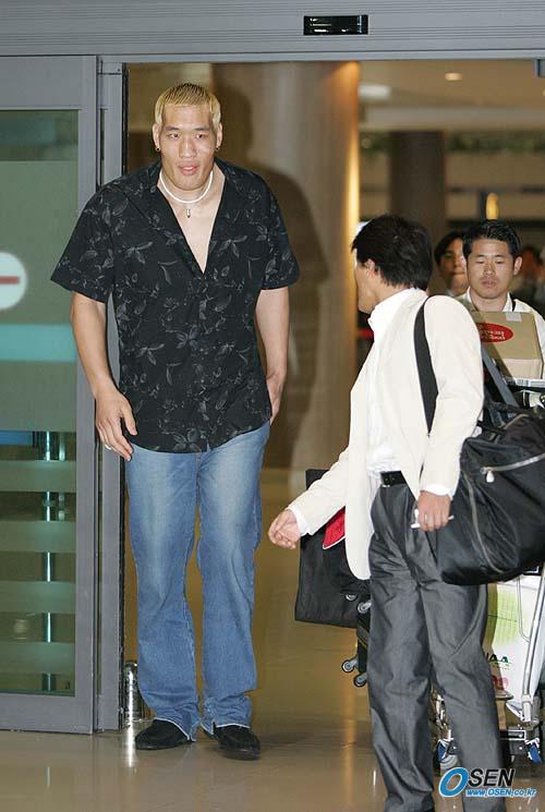 데뷔 첫 해에 K-1 월드 그랑프리 2005 본선 출전 자격을 따내 일약 이종 격투기계의 주목을 끌고 있는 전 민속씨름 스타 최홍만이 28일 오후 인천공항을 통해 일시 귀국했다. 최홍만이 입국장을 나서는 순간 머리가 문에 닿을 듯 말 듯하다./인천공항=손용호 기자 spjj@osen.co.kr [Copyright ⓒ OSEN(www.osen.co.kr) 무단전재 및 재배포 금지]