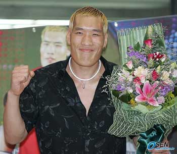 지난 23일 일본 오사카의 오사카돔에서 가진 K-1 월드 그랑프리 2005 개막전에서 미국의 '야수' 밥 샙을 꺾고 오는 11월 19일 일본 도쿄의 도쿄돔에서 갖는 K-1 월드 그랑프리 파이널에 진출한 최홍만이 휴식을 위해 일시 귀국했다. 인천 국제공항을 통해 28일 일시 입국한 최홍만은 스폰서 업체인 스프리스의 직원을 비롯해 최홍만의 승리를 축하하는 팬들, 공항에 모인 많은 사람들의 환영을 받았다. 최홍만은 "밥 샙과의 경기에서 원래는 아웃복싱을 하려고 했지만 나의 맷집이 어느정도인지 궁금해 적극적으로 파고 들었다"며 "하지만 그렇게 큰 타격을 받지 않아 내가 맷집이 세다는 생각을 하게 됐다"고 밝혔다. 또 최홍만은 내심 네덜란드의 '플라잉 더치맨' 레미 보냐스키와의 대결을 반겼다. 최홍만의 매니지먼트를 담당하는 박유현 사장에 따르면 "최홍만은 파이널 조 추첨때 가장 쉬운 3명의 선수를 생각하고 있었는데 그 중에 보냐스키가 두 번째로 좋은 카드였다"며 "첫 번째는 무사시, 세 번째는 피터 아츠였고 제롬 르 밴너는 꼭 피하려고 했던 상대였다"고 말했다. 최홍만은 보냐스키와의 경기에 모든 것을 걸겠다는 '올인 작전'을 다시 밝혔다. 최홍만은 "우승하면 좋겠지만 4강전이나 결승전은 생각하지 않고 있다. 보냐스키와의 경기에 모든 것을 걸겠다"며 "밥 샙과 가졌던 경기 장면을 20번 넘게 보면서 나의 문제점을 파악했다. 오른손 펀치와 하체의 힘을 기르겠다"고 말했다. 이밖에 최홍만은 "지난해까지만 해도 K-1에 대해 전혀 관심이 없었는데 지난 12월 K-1에 입문하면서 점점 재미를 느꼈고 지금은 즐기면서 하고 있다"며 "처음에는 국내 팬들의 비난이 있어 마음고생이 있었지만 이제는 한국인도 강하다는 것을 보여줘야겠다고 생각한다. 보냐스키와의 경기에서 최선을 다하겠다"고 각오를 전했다. 한편 공항에서의 공식 인터뷰를 마친 뒤 부산으로 내려간 최홍만은 3~4일 정도 전혀 공식 일정없이 휴식만 취한 뒤 다음주 초에 다시 일본으로 건너가 보냐스키와의 경기에 대비할 예정이다. 인천공항=박상현 기자 tankpark@osen.co.kr [Copyright ⓒ OSEN(www.osen.co.kr) 무단전재 및 재배포 금지]