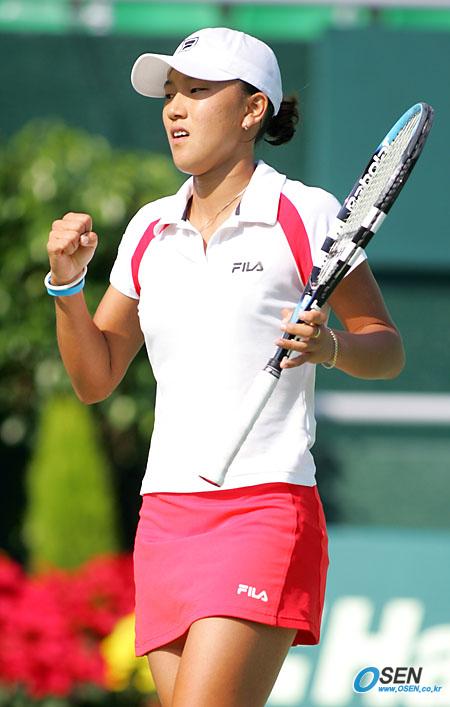 28일 서울 올림픽공원 테니스경기장에서 벌어진 2005 한솔코리아오픈 여자 단식 본선 1회전서 한국의 김소정이 호주의 니콜 플랫을 2세트서 6-2로 이겨 세트스코어 타이를 만든 뒤 주먹을 불끈 쥐며 역전승을 다짐하고 있다. 그러나 플랫이 3세트를 6-4로 승리, 2회전에 올랐다./올림픽공원= 주지영 기자 jj0jj0@osen.co.kr [Copyright ⓒ OSEN(www.osen.co.kr) 무단전재 및 재배포 금지]