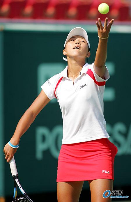 28일 서울 올림픽공원 테니스경기장에서 벌어진 2005 한솔코리아오픈 여자 단식 본선 1회전서 한국의 김소정이 호주의 니콜 플랫에게 서비스를 넣고 있다. 플랫이 6-2, 2-6, 6-4로 승리했다./올림픽공원= 주지영 기자 jj0jj0@osen.co.kr [Copyright ⓒ OSEN(www.osen.co.kr) 무단전재 및 재배포 금지]