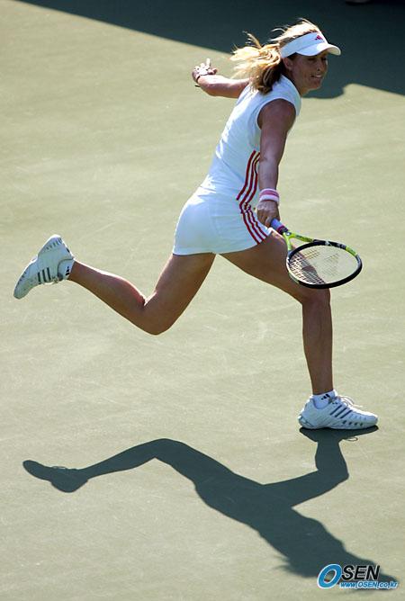 28일 서울 올림픽공원 테니스경기장에서 벌어진 2005 한솔코리아오픈 여자 단식 본선 2회전서 이번 대회 톱시드인 세르비아-몬테네그로의 옐레나 얀코비치(세계 17위)의 로빙볼을 미국의 미건 쇼네시(세계 52위)가 재빨리 쫓아가 돌아서며 리턴하고 있다. 얀코비치가 7-6, 6-2로 승리, 8강전에 선착했다./올림픽공원= 주지영 기자 jj0jj0@osen.co.kr [Copyright ⓒ OSEN(www.osen.co.kr) 무단전재 및 재배포 금지]