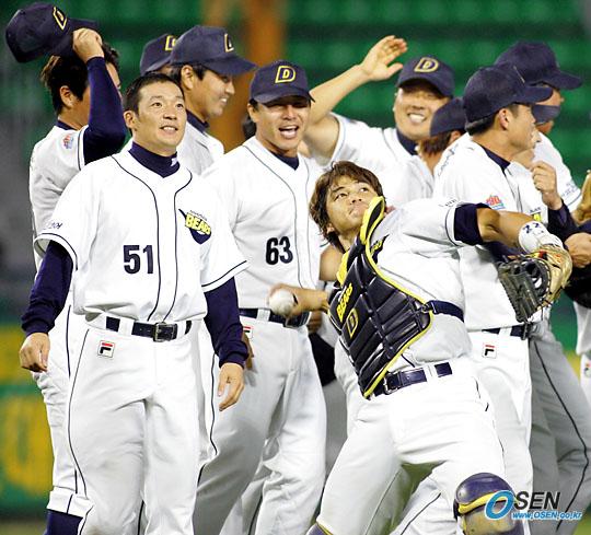 28일 기아 타이거즈와의 잠실 경기서 7-2로 이겨 이날 LG에 덜미를 잡힌 SK를 3위로 끌어내리며 플레이오프에 직행한 두산 베어스의 포수 홍성흔이 삼진으로 마지막 아웃카운트를 잡은 뒤 갖고 있던 볼을 관중석에 서비스하고 있다./잠실= 주지영 기자 jj0jj0@osen.co.kr [Copyright ⓒ OSEN(www.osen.co.kr) 무단전재 및 재배포 금지]
