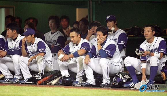 SK 와이번스가 28일 문학구장에서 벌어진 LG 트윈스와의 시즌 최종전서 2-3으로 패해 잠실구장에서 벌어진 경기서 기아를 꺾은 두산에 페넌트레이스 마지막 날 2위를 내주고 3위가 되고 말았다. SK 선수들이 경기 후 아쉬움에 자리에서 일어나지 못하고 있다./인천=손용호 기자 spjj@osen.co.kr [Copyright ⓒ OSEN(www.osen.co.kr) 무단전재 및 재배포 금지]