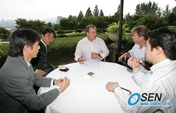 한국 축구대표팀의 신임 사령탑 딕 아드보카트(58) 감독이 입국 첫 날부터 강행군을 펼치며 ‘짧고도 길’ 8개월 여의 한국 생활을 시작했다. 아드보카트 감독은 29일 오전 9시 30분에 KL865편으로 인천공항에 입국해 약식 인터뷰를 한 뒤 곧바로 임시 거처인 서울 하얏트호텔로 이동해 핌 베어벡, 홍명보 코치를 비롯해 강신우 기술국장 등과 한국에서 첫 점심식사를 했다. 이어 오후 12시 40분께 정몽준 회장과 이회택 기술위원장이 직접 아드보카트 감독을 찾아 20분 가량 화기애애한 분위기 속에 짧은 인사를 나눴다. 신임 감독과 대면 후 정 회장은 “많은 사람들이 기대하는 만큼 나도 똑같이 기대하고 있다”고 말한 뒤 “앞으로 많이 지원해 달라”며 저녁 만찬을 기약하며 자리를 떴다. 이후 아드보카트 감독의 주재 하에 핌 베어벡, 홍명보 코치, 강신우 기술국장이 첫 코칭스태프 회의를 가지며 앞으로 대표팀 운영 방안에 대해 폭넓게 이야기를 나눴다. 아드보카트 감독은 저녁 6시에는 신라호텔로 이동해 정 회장을 비롯한 협회 임원들과 정식 상견례 및 저녁 만찬을 들면서 축구계에 공식적인 첫 인사를 하게 된다. 저녁 만찬 후에는 다시 거처인 하얏트호텔로 이동해 ‘새로운 도전의 땅’ 한국에서의 힘들고도 보람찬 하루 일정을 모두 마친다. 이튿날인 30일 10시에는 기자회견을 시작으로 본격적인 한국 생활을 맞이한다. 국영호 기자 iam905@osen.co.kr [Copyright ⓒ OSEN(www.osen.co.kr) 무단전재 및 재배포 금지]