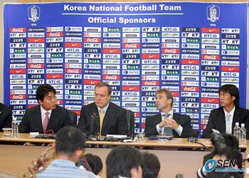 "해외파 선수들의 풍부한 경험을 믿는다. 하지만 정신력이 해이하다면 곧바로 집으로 가야할 것이다". 위기에 빠진 한국 축구대표팀을 이끌고 2006 독일월드컵에 출전할 딕 아드보카트 감독(58)이 선수들의 정신력과 분발을 요구했다. 아드보카트 감독을 비롯해 핌 베어벡 수석코치, 홍명보 코치, 정기동 골키퍼 코치 등 대표팀 코칭스태프는 30일 서울 신문로 축구회관에서 공식 기자회견을 가졌다. 아드보카트 감독은 이 자리에서 "2002 한일월드컵이 끝난 뒤 3년이 넘는 시간이 흐르는 동안 많은 선수들이 유럽이나 일본 등 해외로 진출했다"며 "그들은 풍부한 경험을 쌓았고 이를 경험이 부족한 선수들에게 전수한다면 훌륭한 팀으로 거듭날 수 있을 것"이라고 밝혔다. 또 아드보카트 감독은 비가 내리는 날씨에 대해 고국인 네덜란드와 비슷해 집에 온 것 같다며 소감을 밝힌 뒤 "한국 대표팀을 이끄는 중요한 역할을 맡아 영광"이라고 말했고 베어벡 코치 역시 "한국에 두 번째 왔고 한일월드컵 당시의 영광을 재현하고 싶다"며 "아드보카트 감독과 같은 세계적인 명장과 함께 일을 하게 되어 영광"이라고 밝혔다. 다음은 아드보카트 감독과 베어벡 코치와의 일문일답. - 한국대표팀을 맡으면서 자신감을 피력했는데 이유가 있나. ▲ 나는 어제 공항에서 자신감을 밝혔다. 그저 각오로만의 자신감이 아니라 근거가 있다. 일단 박지성 이영표 등 유럽에 진출해 있는 선수들이 그동안 풍부한 경험을 축적했고 일본에 있는 선수들 역시 역량을 쌓아왔다. 그들은 현재 대표팀에서 중요한 역할을 할 선수들이다. - 한국 선수들에 대한 파악이 시급한데. ▲ 베어벡 코치가 한국 선수들에 대한 정보를 많이 가지고 있고 대한축구협회가 보내준 자료를 보기도 했다. 또한 이에 그치지 않고 K리그 경기를 많이 관전하며 가능성이 있는 선수들을 최대한 발굴할 계획이다. - 한일월드컵 참가 선수들의 정신력 문제가 제기되고 있는데. ▲ 한일월드컵 당시의 선수들은 팀 플레이를 하고 필드에서 투쟁하면서 좋은 결과를 얻어냈다. 하지만 정신력이 떨어진다면 그들은 집에 가서 쉬어야할 것이다. - 어떤 포메이션을 쓸 것인지. ▲ 한국이 그동안 3-4-3 포메이션을 쓴 것으로 알고 있고 다음달 12일 이란과의 A매치에서도 일단 3-4-3을 사용할 계획이다. 하지만 선수들 자질과 역량이 가장 중요하므로 이에 따라 포메이션이 결정될 것이다. - 8개월밖에 남지 않았는데 시간이 부족한 것 아닌가. 전임 감독들도 시간 부족을 이유로 내세웠다. ▲ 가장 시급한 것은 자신감을 끌어올리는 것이다. 또한 해외파와 국내파 선수들을 제대로 파악할 수 있는 때는 내년 1월 전지훈련이다. 전지훈련 때 매일 훈련하고 선수들과 시간을 가질 계획이다. 또한 올해 최대 3번이 될 A매치를 통해 가능성 있는 선수들을 발굴하고 육성할 것이다. 또한 경험많은 해외파 선수들이 자신들의 기량을 살리고 이를 어린 선수들에게 전수한다면 시간적인 것은 문제가 되지 않는다. - 자신의 경기 스타일은. ▲ 모든 경기에서 이기고 경기를 지배하는 것이 가장 중요하다. 항상 공격하거나 항상 수비만 할 수 없는 것이 축구다. 역량이 갖춰진다면 공격축구로 나갈 것이다. 또한 모든 선수들은 상대와 1대1로 맞서 이길 수 있어야만 한다. 여기에 체력을 바탕으로 한 강한 압박축구를 할 것이다. - 유로 2004에서 아르옌 로벤을 뺀 뒤 경기에서 지는 등 선수 운용에 대한 비판이 있는데. ▲ 좋은 질문이다. 당시 로벤을 뺐던 것은 부상에서 회복하고 나서 훈련을 이틀밖에 하지 못했기 때문이다. 로벤은 완전한 몸 상태가 아니었고 다음 경기를 위해 그를 아낄 필요가 있었다. 하지만 경기 결과가 좋지 않게 나왔다. - 아랍에미리트연합(UAE) 축구협회와의 관계는 잘 정리되었는가. ▲ UAE 축구협회 회장과 얘기는 잘 끝났다. 당시 계약으로는 내가 좋은 조건이 있으면 언제든지 떠날 수 있고 반대로 내가 좋은 성적을 내지 못한다면 UAE가 언제든지 나를 해임시킬 수 있는 조건이었다. 따라서 아무런 문제가 없다. 안심해도 된다. - 대표팀 명단에서 설기현이 제외되고 대신 송종국 최진철이 합류했다 ▲ 설기현도 대표팀에 합류하는 것을 원했고 나 역시 그랬다. 하지만 그의 아내가 임신 중이어서 가정적인 면을 고려해 제외시켰다. 또 송종국의 경우 페예노르트 로테르담에서 뛰고 있을 때부터 알고 있었다. 부상에서 회복되어 경기에 뛰고 있는 것으로 안다. 최진철은 대표팀에 복귀하고 싶다는 의사가 있음을 홍명보 코치가 직접 확인했다. - (베어벡 코치에게) 거스 히딩크 감독과 아드보카트 감독과의 차이점이 있다면. ▲ 히딩크 감독과 1년 반 정도 같이 생활했고 아드보카트 감독과도 1년 정도 같이 지냈다. 히딩크 감독이나 아드보카트 감독이나 네덜란드 대표팀을 이끌고 월드컵에 참여했다는 점에서 국제적인 경험면에서는 차이가 없다. 또한 스타일 역시 상대를 압도하는 강력한 압박축구를 한다. 다만 성격적인 면에서는 다를 수 있다. 박상현 기자 tankpark@osen.co.kr [Copyright ⓒ OSEN(www.osen.co.kr) 무단전재 및 재배포 금지]