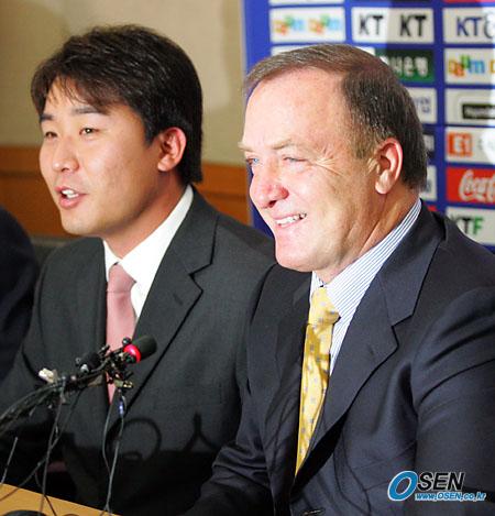 아드보카트 신임 국가대표팀 감독이 30일 오전 서울 신문로 축구회관에서 가진 취임 기자회견에서 통역원이 설명하는 동안 활짝 웃고 있다./주지영 기자 jj0jj0@osen.co.kr [Copyright ⓒ OSEN(www.osen.co.kr) 무단전재 및 재배포 금지]