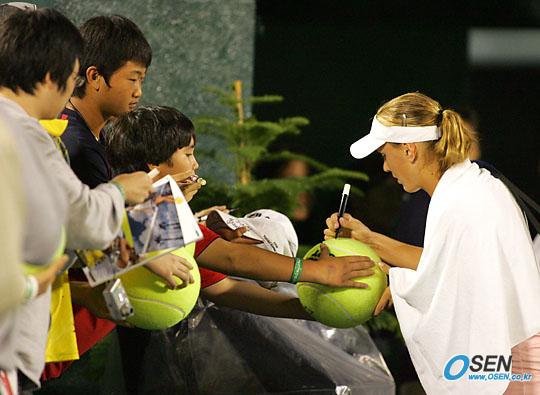 1일 서울 올림픽공원 테니스경기장에서 벌어진 2005 한솔코리아오픈 여자 단식 준결승(4강전)에서 카스타노(콜롬비아)에 2-0으로(7-5,6-4) 승리한 바이디소바(체코)가 경기장을 나서며 팬들에게 싸인을 해주고 있다./올림픽공원= 주지영 기자 jj0jj0@osen.co.kr [Copyright ⓒ OSEN(www.osen.co.kr) 무단전재 및 재배포 금지]
