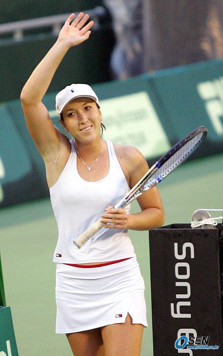1일 서울 올림픽공원 테니스경기장에서 벌어진 2005 한솔코리아오픈 여자 단식 준결승서 골로방에 승리해 결승에 진출한 얀코비치가 팬들에게 손을 흔들어 인사를 하고 있다. 경기는 2-1(6-4,5-7,6-4) 로 얀코비치가 승리했다./올림픽공원= 주지영 기자 jj0jj0@osen.co.kr [Copyright ⓒ OSEN(www.osen.co.kr) 무단전재 및 재배포 금지]