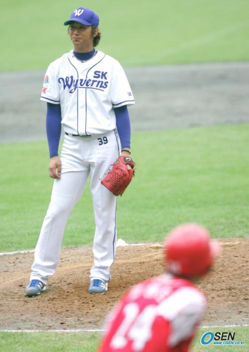 3일 문학구장에서 벌어진 SK 와이번스와 한화 이글스의 준PO 3차전 한화 5회초 1사 SK 선발투수 신승현이 한화 고동진을 데드볼로 내보내고 아쉬워 하고 있다. 신승현은 다음타자 데이비스에게 역전 투런 홈런을 맞아 아쉬움이 더 컷다./인천=손용호기자spjj@osen.co.kr [Copyright ⓒ OSEN(www.osen.co.kr) 무단전재 및 재배포 금지]