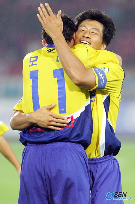 5일 성남 제2종합운동장에서 벌어진 성남 일화와 수원 삼성의 경기 후반 모따가 선제골을 터뜨린 뒤 김도훈과 포옹하며 기뻐하고 있다./성남=주지영 기자 jj0jj0@osen.co.kr [Copyright ⓒ OSEN(www.osen.co.kr) 무단전재 및 재배포 금지]
