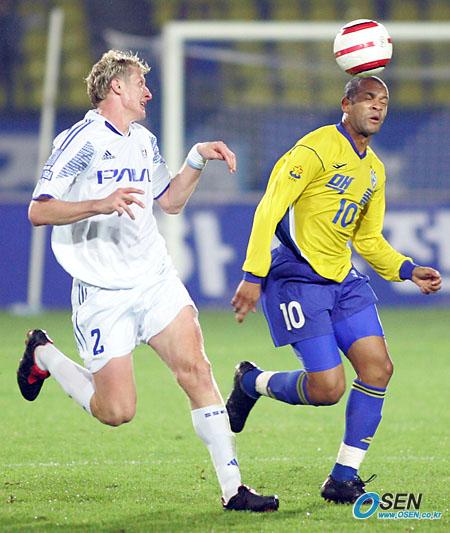 5일 성남 제2종합운동장에서 벌어진 성남 일화와 수원 삼성의 경기 후반 성남의 두두(오른쪽)가 머리로 볼을 컨트롤하며 수원의 마토와 나란히 달려가고 있다./성남=주지영 기자 jj0jj0@osen.co.kr [Copyright ⓒ OSEN(www.osen.co.kr) 무단전재 및 재배포 금지]