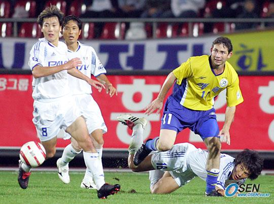 5일 성남 제2종합운동장에서 벌어진 성남 일화와 수원 삼성의 경기 후반 수원의 송종국 김진우, 성남의 모따, 수원의 박건하(왼쪽으로부터)의 시선이 모두 볼에 집중돼 있다. 경기는 1-0으로 성남이 승리하였다./성남=주지영 기자 jj0jj0@osen.co.kr [Copyright ⓒ OSEN(www.osen.co.kr) 무단전재 및 재배포 금지]