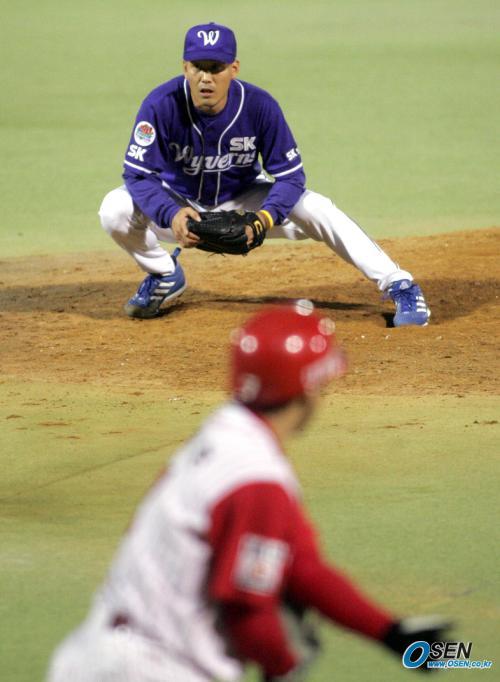 6일 대전구장에서 벌어진 준PO 5차전 한화 이글스와 SK 와이번스의 경기 한화의 4회말 SK 투수 위재영이 이범호를 볼넷으로 내보내면서 마운드에 주저앉아 아쉬워하고 있다. 위재영은 이날 2회부터 4회까지 3이닝을 던져 이번 준플레이오프 5경기에 모두 출장했다. /대전=손용호 기자 spjj@osen.co.kr [Copyright ⓒ OSEN(www.osen.co.kr) 무단전재 및 재배포 금지]