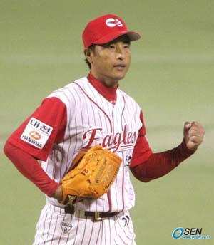 '회장님' 한화 송진우(39)는 두번 고개 숙이지 않았다. 지난 2차전에서 3⅓이닝 5실점으로 패전의 멍에를 썼던 송진우는 팀의 운명이 오로지 자신의 왼 어깨에 올려진 순간 꿋꿋이 빛났다. 6이닝 9피안타 1볼넷 8탈삼진 3실점. 프로야구 포스트시즌 24년 사상 최고령 선발승(39세 7개월 20일)으로 한화를 6년만에 플레이오프에 올려놓았다. 6일 대전구장에서 펼쳐진 준플레이오프 사상 첫 5차전에서 한화가 송진우의 역투와 브리또 신경현 이범호의 홈런 3방으로 SK를 6-5 한점차로 누르고 3승 2패로 플레이오프행 티켓을 거머쥐었다. 한국시리즈 첫 우승을 차지했던 1999년 이후 6년만의 PO 진출. 준플레이오프 승리는 1994년 이후 11년만이다. 엎치락뒷치락 1승씩 주고받아온 1~4차전처럼 승부는 중반까지도 종잡을 수가 없었다. 한화가 밀어붙이자 SK가 매섭게 따라붙었다. 1회말 불안하게 흔들리는 SK 선발 채병룡을 상대로 1사 만루의 기회를 잡은 한화는 이도형의 적시타로 선취점을 뽑았다. 이어 2회엔 선두타자 브리또가 총알같이 날아가 왼쪽 담장에 꽂히는 솔로홈런으로 채병룡을 강판시켰다. SK는 1~4차전 내리 등판했던 위재영을 투입하며 필승의 의지를 보였다. 위재영은 첫 타자 신경현에게 좌중간 담장을 넘기는 연속타자 홈런을 허용했지만 이후 3연속 탈삼진 등 3회까지 내리 6타자를 범퇴시켰다. 위재영의 호투를 등에 없고 SK 타자들의 반격이 시작됐다. 3회 정경배의 몸에 맞는 공과 김민재의 1루앞 내야안타로 만든 2사 1,3루에서 이진영과 김재현의 연속 적시타가 터져나와 순식간에 한점차로 따라붙었다. 김재현의 중전안타 때 1루 주자 이진영은 3루까지 뛰어 세이프됐지만 중심이 높아 발이 떼지는 사이 한화 중견수 데이비스의 노바운드 송구를 받은 3루수 이범호의 태그로 아웃돼 동점 기회를 날렸다. SK는 4회 선두타자 이호준의 중월 2루타와 박경완의 우전적시타로 기어코 동점을 만들며 송진우를 옥죄어 들었다. 하지만 결정적인 순간 또다시 주루 미스가 나왔다. 박경완이 2루까지 달리다 우익수 고동진의 정확한 송구에 걸려 아웃된 것. SK의 결정적인 주루사 두 개로 고비를 넘긴 한화는 4회말 곧바로 재반격했다. SK 유격수 김민재의 실책이 빌미가 됐다. 선두타자 이범호가 볼넷을 골라나간 뒤 2사후에 한상훈의 땅볼 타구를 펌블하며 1루에 악송구해 1,3루를 내줬다. 조원우가 우전 적시타로 3루 주자 이범호를 불러들였다. 한화는 5회초 박재홍의 기습 번트 타구를 잡은 이범호가 글러브에서 빼지 못하는 바람에 다시 무사 1,2루에 몰렸지만 이진영의 잘 맞은 강습타구를 3회 교체돼 들어간 2루수 한상훈이 원바운드로 잘 잡아 병살 플레이로 연결했다. 위기 뒤 바로 기회가 왔다. 하마터면 패전의 주범이 될 뻔 했던 이범호가 5회말 2사 1루에서 SK 세번째 투수 정대현의 초구 빠른 공을 밀어쳐 대전구장 오른쪽 담장을 넘겨버렸다. 6-3. 4차전까지 16타수 2안타의 빈타에 허덕이던 이범호의 생애 첫 포스트시즌 홈런. 몇 차례 무너질 뻔한 고비를 잘 넘기고 7회 공을 최영필에게 건네준 송진우는 만 39세 7개월 20일만에 승리를 따내 한국 프로야구 사상 포스트시즌 최고령 선발승 기록까지 갈아치웠다. 종전 기록은 LG 만자니오가 지난 2002년 삼성과 한국시리즈 2차전에서 기록한 39세 18일이다. 7회 무사 1루에서 송진우를 구원한 3차전 승리투수 최영필은 무실점을 이어가던 9회 2사 3루에서 박재홍에게 투런 홈런을 맞은 뒤 김민재에게 홈런성 파울 내주는 등 풀카운트 승부 끝에 10구만에 2루앞 땅볼로 잡고 극적으로 경기를 마무리지었다. 최영필은 3차전 7⅓이닝 1실점 구원승으로 데뷔 첫 포스트시즌 승리를 따낸 지 사흘만에 프로 데뷔 후 첫 포스트시즌 세이브까지 따내며 플레이오프행의 일등공신이 됐다. 최영필은 준플레이오프 MVP에 선정됐다. 대전=이종민 기자 mini@osen.co.kr [Copyright ⓒ OSEN(www.osen.co.kr) 무단전재 및 재배포 금지]
