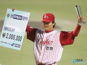 프로 데뷔 후 첫 수상의 기쁨도 잠시였다. 6일 준플레이오프 최종 5차전서 3이닝 2실점으로 세이브를 올리며 올 준플레이오프에서 1승 1세이브를 마크, 준플레이오프 MVP로 선정된 한화 구원투수 최영필(31)은 흥분한 가운데서도 앞으로 열릴 플레이오프에서 '야구장에서 쓰러진다는 각오로 최선을 다하겠다'며 수상의 소감을 대신했다. 3게임서 10⅔이닝 3실점, 방어율 2.53을 기록한 최영필은 상금 200만원과 크리스털 트로피를 받았다. -이런 큰 상을 받아본 적이 있나. ▲프로 데뷔 후 처음이다. 앞으로 열릴 플레이오프에서 더 잘하라는 뜻으로 알고 열심히 하겠다. -9회 박재홍에게 투런 홈런을 맞아 위기였는데. ▲직구가 높게 들어간 실투였다. 타구가 넘어갈 것으로는 안봤는데 생각보다 멀리 나갔다. 하지만 주자가 없는 상황이어서 여유를 갖고 다음타자와 상대했다. -지금 가장 생각나는 사람은. ▲뛸 기회를 제공해주고 맡겨준 감독님과 코칭스태프에게 정말 감사한다. 믿음에 보답한 것 같아 만족한다. 흥분된 마음을 가라앉히고 차분하게 플레이오프에 대비하겠다. -플레이오프에 임하는 각오라면. ▲우리 팀은 현재 투지밖에 없다. 몸이 따라주는 한 최선을 다하겠다. 야구장에서 쓰러지는 한이 있어도 최선을 다한다는 마음뿐이다. -선발로 뛰지 못해 아쉬운 점은 없나. ▲전혀 없다. 팀 사정상 불펜으로 나올 수밖에 없는 점을 이해한다. -오늘도 이호준에게 안타를 내줬는데. ▲잘 친다. 유인구도 제대로 구사됐는데 잘 쳤다. 내년에나 이겨야겠다. 대전=박선양 기자 sun@osen.co.kr [Copyright ⓒ OSEN(www.osen.co.kr) 무단전재 및 재배포 금지]