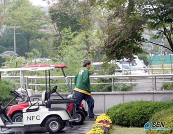 '쿠키' 송종국(26.수원)이 아드보카트호에 지각 합류해 헐레벌떡 대표팀 숙소로 뛰어들었다. 송종국은 7일 오후 1시 9분에 파주 NFC(대표팀트레이닝센터) 도착, 1시까지로 입소 시한을 둔 아드보카트 감독의 지시를 어겼다(?). 초록색 자켓에 청바지를 입은 송종국은 취재진과 인터뷰를 할 겨를도 없이 옆문으로 뛰어 들어가(사진) 22명의 엔트리 중 가장 늦게 대표팀에 합류했다. 송종국과 동행한 동료는 "수원 집에서 11시에 출발했는데 차가 막히는 통에 늦게 됐다"고 해명했다. 22명 전원이 입소를 마친 대표팀은 점심 식사를 마친 뒤 오후 4시 30분에 아드보카트 감독의 지휘 하에 첫 훈련을 개시할 예정이다. 파주=국영호 기자 iam905@osen.co.kr [Copyright ⓒ OSEN(www.osen.co.kr) 무단전재 및 재배포 금지]