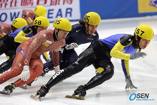 2005~2006 ISU쇼트트랙 서울 월드컵대회가 7일 오후 서울 목동 종합운동장 내 실내아이스링크에서 개막됐다. 1500M 남자 결승서 한국의 우승후보 안현수가 선두로 달리고 있다./목동실내링크=주지영 기자 jj0jj0@osen.co.kr [Copyright ⓒ OSEN(www.osen.co.kr) 무단전재 및 재배포 금지]