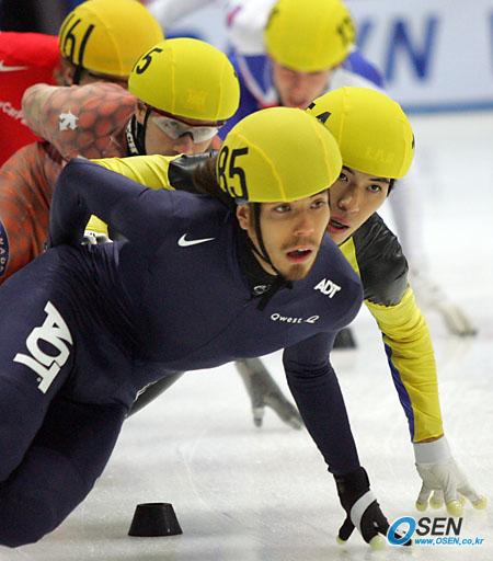 2005~2006 ISU쇼트트랙 서울 월드컵대회가 7일 오후 서울 목동 종합운동장 내 실내아이스링크에서 개막됐다. 1500M 남자 준결승서 미국의 우승후보 아폴로 안톤 오노가 한국의 오세종을 제치고 1위로 골인, 결승에 진출했다./목동실내링크=주지영 기자 jj0jj0@osen.co.kr [Copyright ⓒ OSEN(www.osen.co.kr) 무단전재 및 재배포 금지]