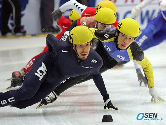 2005~2006 ISU쇼트트랙 서울 월드컵대회가 7일 오후 서울 목동 종합운동장 내 실내아이스링크에서 개막됐다. 1500M 남자 준결승서 조 1위로 결승에 진출한 오노가 코너를 돌고 있다. 하지만 오노는 결승서 실격 처리됐고 한국의 안현수가 우승했다./목동실내링크=주지영 기자 jj0jj0@osen.co.kr [Copyright ⓒ OSEN(www.osen.co.kr) 무단전재 및 재배포 금지]