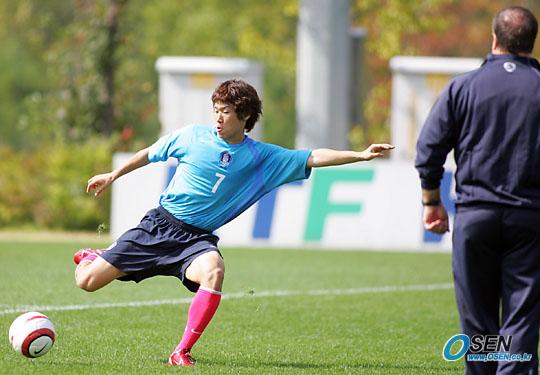 아드보카트 신임 감독이 이끄는 한국 축구대표팀이 8일 오전 10시 반부터 파주 NFC에서 소집 이틀째 훈련에을 실시했다. 아드보카트 감독이 박지성의 슈팅 모습을 지켜보고 있다./파주=주지영 기자 jj0jj0@osen.co.kr [Copyright ⓒ OSEN(www.osen.co.kr) 무단전재 및 재배포 금지]