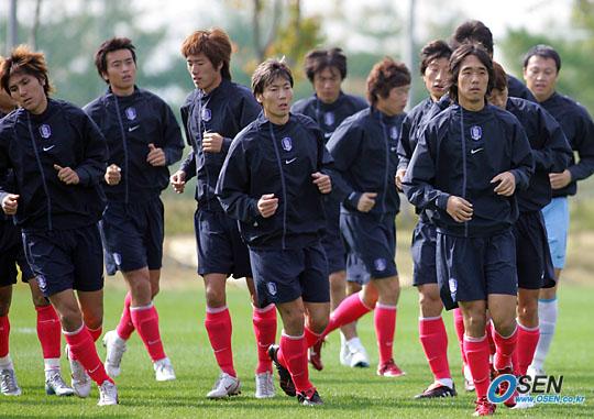 아드보카트 신임 감독이 이끄는 한국 축구대표팀이 8일 오전 10시 반부터 파주 NFC에서 소집 이틀째 훈련을 실시했다. 선수들이 운동장을 뛰며 몸을 풀고 있다./파주=주지영 기자 jj0jj0@osen.co.kr [Copyright ⓒ OSEN(www.osen.co.kr) 무단전재 및 재배포 금지]