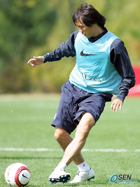 아드보카트 신임 감독이 이끄는 한국 축구대표팀이 8일 오전 10시 반부터 파주 NFC에서 소집 이틀째 훈련을 실시했다. 신임 홍명보 코치가 공을 패스해 주고 있다./파주=주지영 기자 jj0jj0@osen.co.kr [Copyright ⓒ OSEN(www.osen.co.kr) 무단전재 및 재배포 금지]