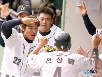 "오늘은 성흔이가 한 개 쳐주겠죠. 어제는 투수 리드가 좋았던 걸로 만족이지만". 홍성흔(28)이 김경문 두산 감독을 천재로 만들었다. 9일 플레이오프 2차전에 앞서 덕아웃에서 기자들에 둘러싸인 김 감독은 1차전에서 선발 라인업 9명 중 유일하게 안타를 치지 못한 홍성흔 얘기를 꺼냈다. 김 감독은 "오늘은 홍성흔이 해주겠지"라는 말을 주문처럼 되뇌었다. 김 감독의 예상이 맞았다. 경기 초반 흐름은 두산이 상당히 안 좋았다. 1회와 2회 연속 선두타자 장원진과 안경현의 안타와 보내기 번트로 1사 2루의 기회를 잡았지만 날려버렸다. 선발 맷 랜들이 리오스처럼 상대를 압도하는 스타일이 아니기에 두산 덕아웃엔 어두운 그림자가 드리웠다. 3회는 삼자범퇴를 당한 뒤 4회말 두산 공격. 김동주가 투수 앞 땅볼로 물러난 뒤 홍성흔이 타석에 섰다. 초구 헛스윙한 뒤 2구째 파울을 내 2-0의 궁지. 하지만 3구째가 다시 스트라이크존으로 들어오자 홍성흔은 놓치지 않고 잡아당겨 3-유간을 뚫는 땅볼 안타를 만들어냈다. 이후론 술술 풀렸다. 안경현의 연속안타와 손시헌의 볼넷으로 만루를 만든 뒤 김창희가 포수 플라이로 물러나 투아웃이 됐지만 전상렬의 행운의 우익선상 2루타와 장원진의 2타점 우전 적시타가 잇달아 터져나왔다. 4-0. 김경문 감독의 예언 아닌 예언대로 모든 건 홍성흔의 방망이에서 시작됐다. 7회에도 좌전안타를 터뜨려 4타수 2안타를 기록한 홍성흔은 경기 후 "1차전에서 홀로 무안타여서 위축되지 않았냐"는 질문에 그답게 "그런 게 어딨어요? 그냥 나가서 휘두르는 거죠"라며 쾌활하게 물었다. 하지만 다시 묻자 말이 달라졌다. "사실은요. 집에 가서 기도했죠". 타석에서 활발한 공격뿐 아니라 1,2차전에서 리오스-랜들 용병 듀오를 합작 15이닝 1실점으로 이끌었으니 기도의 효험은 대단했다. 잠실=이종민 기자 mini@osen.co.kr [Copyright ⓒ OSEN(www.osen.co.kr) 무단전재 및 재배포 금지]