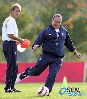 공격훈련은 공격수의 전유물이 아니다. 수비수도 공격이 필요하다. 딕 아드보카트 감독이 이끄는 한국축구대표팀이 점점 '토털사커'로 변하고 있다. 물론 이같은 변화는 '토털사커'의 계승자인 아드보카트 감독이 부임했기 때문에 일어난 일이다. 경기도 파주 대표팀 트레이닝센터(NFC)에서 10일 가진 대표팀의 4일째 훈련에서는 왼쪽과 오른쪽에서 올라오는 크로스 훈련이 눈길을 끌었다. 하지만 크로스에 이은 득점 훈련은 보통 공격수들만 해왔으나 수비수들도 예외없이 적용됐다. 이때문에 왼쪽에 있는 최태욱과 김동진, 오른쪽에 있는 송종국과 조원희가 크로스를 올려주면 이를 헤딩이나 논스톱 슈팅으로 연결시키는 훈련을 박주영, 이동국, 박지성, 이천수, 안정환, 정경호는 물론이고 김진규, 최진철 등 수비수까지 한 것이다. 또 공격수들이 크로스 훈련을 하기 전에는 페널티지역 바깥 쪽에서 중거리 슈팅을 하기도 했다. 이에 대해 홍명보 코치는 "거스 히딩크 감독이 계셨을 때도 수비수는 크로스 훈련을 했다"며 "아드보카트 감독은 수비수들이 자신의 포지션을 지키는 것과 동시에 공격과 수비의 균형을 요구하고 있다"고 전했다. 아드보카트 감독가 부임한지 얼마 되지 않았기 때문에 당장에 대표팀이 확 바뀌는 일은 없을 것이다. 하지만 오는 12일 서울 상암 월드컵경기장에서 열리는 이란과의 친선 A매치에서 대표팀의 어느정도 달라진 모습을 기대해도 좋을 듯 하다. 한편 대표팀은 이날 훈련 뒤 저녁식사를 마치고 서울 홍은동 그랜드 힐튼 호텔로 숙소를 옮겼다. 대표팀은 11일 오전 호텔 그랜드볼룸에서 합동 기자인터뷰를 가진 뒤 저녁에 월드컵경기장에서 이란전을 앞둔 마지막 훈련을 갖게 된다. 파주=박상현 기자 tankpark@osen.co.kr [Copyright ⓒ OSEN(www.osen.co.kr) 무단전재 및 재배포 금지]