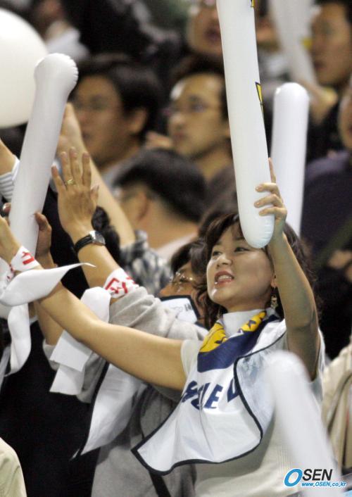 10일 잠실구장에서 벌어진 두산 베어스와 한화 이글스의 PO 3차전서 두산이 1-0으로 승리, 시리즈 전적 3-0의 완승을 거두며 한국시리즈에 진출했다. 두산의 여성 팬이 쌀쌀한 날씨에도 반팔 티셔츠 차림으로 열렬히 응원하고 있다./잠실=손용호 기자 spjj@osen.co.kr [Copyright ⓒ OSEN(www.osen.co.kr) 무단전재 및 재배포 금지]