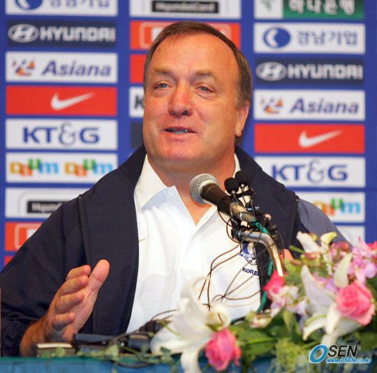 11일 오전 서울 홍은동 그랜드 힐튼 호텔에서 축구 대표선수 전원이 합동 기자 간담회를 가졌다. 아드보카트 감독이 여유있게 웃으며 재치있는 말 솜씨로 인터뷰에 응하고 있다./주지영 기자 jj0jj0@osen.co.kr [Copyright ⓒ OSEN(www.osen.co.kr) 무단전재 및 재배포 금지]
