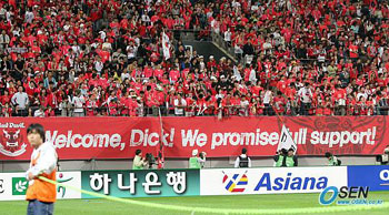 한국 축구대표팀 공식 응원단 '붉은 악마'가 신임 딕 아드보카트 감독에 대한 환영 의사를 나타냈다. 붉은 악마는 12일 서울 상암 월드컵 경기장에서 열린 한국과 이란과의 A매치 평가전에서 'Welcome, Dick! We promise full support! (딕 아드보카트 환영합니다. 모든 지원과 응원을 약속합니다)'란 현수막을 걸고 응원전을 펼쳤다. 이는 요하네스 본프레레 전 감독이 전광판에 나왔을 때 붉은 악마 뿐만 아니라 관중들이 야유를 보냈던 것과 완전히 다른 모습이다. 비록 대한축구협회 기술위원회의 사전결정설 등이 나돌았지만 지난 며칠동안 보여줬던 아드보카트 감독의 모습에 대해 팬들이 어느정도 신뢰감을 보내고 있는 것으로 풀이된다. ▲골키퍼 이운재 주장 완장 한국 축구대표팀의 수문장 이운재가 계속 주장 완장을 찼다. 아드보카트 감독은 이날 경기가 열리기 전 베스트 11을 발표하고 골키퍼 이운재에게 주장의 임무를 맡겼다. 그동안 대표팀에 복귀한 '맏형' 최진철이 주장완장을 물려받을 것으로 예상됐으나 아드보카트 감독은 그대로 이운재에게 임무를 맡겼다. 한편 이란의 예봉을 철저하게 막을 주전 '스리백'에는 최진철을 비롯해 김영철과 김진규가 기용됐다. FC 서울 듀오 박주영과 백지훈과 함께 팀내 유일한 1985년생인 김진규와 최진철의 나이차는 무려 14년이나 난다. ▲이호에게 카리미 봉쇄 특명 중앙 미드필더에 김두현과 함께 기용된 이호가 이란의 '에이스' 알리 카리미를 봉쇄하는 특명을 받았다. 이호는 이날 오전 서울 홍은동 그랜드 힐튼 호텔에서 가진 팀 미팅에서 카리미를 막으라는 특명과 함께 아드보카트 감독으로부터 특별 지시를 받은 것으로 알려졌다. 김동진과 조원희가 좌우 미드필더로 나서는 가운데 박주영과 박지성 역시 예상대로 좌우 날개 공격수로 기용됐다. 또 아드보카트 감독이 11일 가진 기자 간담회에서 "나는 움직임이 많은 공격수를 좋아한다"며 "최전방 스트라이커가 움직임이 많아야 상대 수비진들의 공간을 넓혀 기회를 만들 수 있게 된다"고 밝힌바 있어 박주영, 박지성과 함께 할 공격수로 안정환의 선발 기용이 점쳐졌으나 예상을 깨고 이동국이 나섰다. 한편 이날 경기는 친선전인 관계로 6명까지 선수 교체가 가능하다. ▲ 주심은 사우디아라비인이 맡아 이란과의 경기에 사우디아라비아 심판이 주심으로 나서 눈길을 끌었다. 같은 이슬람 국가라는 특수성이 한국에게 다소 불리하게 작용될 수도 있긴 하지만 이란과 사우디아라비아는 서로 종파(시아파와 수니파)가 다르기 때문에 사실상 두 나라는 '앙숙' 관계다. 이슬람계 심판이 주심으로 기용된 것이 한국에게 불리하게 작용할지 아니면 파가 다르다는 이유로 오히려 유리하게 될지를 지켜보는 것도 이 경기의 묘미로 떠오르게 됐다. 상암=박상현 기자 tankpark@osen.co.kr [Copyright ⓒ OSEN(www.osen.co.kr) 무단전재 및 재배포 금지]