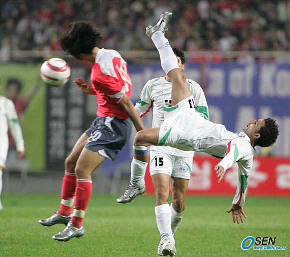 12일 저녁 서울 상암 월드컵경기장서 벌어진 아드보카트 신임 감독의 데뷔전서 한국이 조원희와 김진규의 골로 이란에 2-0으로 승리했다. 박주영이 이란의 오른쪽 백 호세인 카비가 오버헤드킥으로 공을 걷어내려 하자 먼저 헤딩하고 있다./상암=손용호 기자 spjj@osen.co.kr [Copyright ⓒ OSEN(www.osen.co.kr) 무단전재 및 재배포 금지]